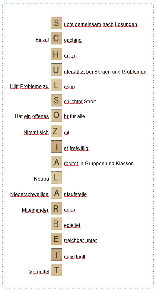Die Schulsozialarbeit unterstütz uns im täglichen Zusammenleben als neutrale Stelle mit einem sehr geschätzten und breiten Angebot.